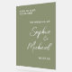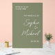 Hermoso cartel acrílico escarpado con letras de guión, nombres y fecha.