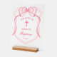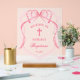 Señal Acrílica Bienvenida al bautismo Escudo Bow Rosado