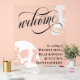 Elegante boda de Halloween o gótico bienvenido signo acrílico con bienvenida escrita en un elegante guión de caligrafía negra. Agregue sus nombres y fecha de boda en un fondo transparente con dos cráneos blancos. Añada un toque de romanticismo oscuro a su boda gótico con este elegante signo de bienvenida acrílico. Este signo de bienvenida acrílico transparente presenta un guión de caligrafía rápida y dos cráneos pálidos, perfecto para su boda de gótico único y elegante.
