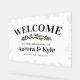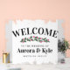 Cartel de bienvenida acrílico boda impreso para lucir pintado de blanco con fuertes pinceles anchos y bienvenidos en un arco encima de una ramera verde con bayas rosas profundas. Agregue sus nombres en un tipo de letra serif en negro y la fecha de su boda y la ubicación debajo. Pintura blanca, boda acrílico, signo de bienvenida con vegetación y bayas rosas. Bienvenido a tu boda con un cartel de bienvenida acrílico personalizado con tus nombres impresos en negro contra un fondo de pincel en blanco.