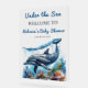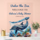 Celebra el futuro cercano con este caprichoso y inspirador cartel de bienvenida acrílico "Bajo el Mar" en azul con delfín y ola para tu Boy Baby Shower