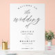 Crea tu propio signo de bienvenida boda personalizado con un diseño moderno de estilo tipográfico de moda con elegante caligrafía de escritura. Añade tu fecha de nombres y detalles de tu día especial.