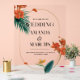 Este es un elegante signo boda con flores tropicales y un diseño de marco dorado con tipografía elegante. Su sofisticado y elegante diseño le permite editar texto, imágenes y fuentes. Este diseño es excelente para todo aquel que guste de los bodas tropicales.