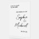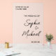 Hermoso cartel acrílico escarpado con letras de guión, nombres y fecha.