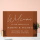 Bienvenido a sus huéspedes bodas con este sencillo y elegante cartel de acrílico de bienvenida a la boda. El signo de bienvenida horizontal boda presenta un guión blanco manuscrito con fondo acrílico de terracota. Personalice el cartel de bienvenida de terracota con sus nombres, fecha de boda y ciudad/estado. El cartel de bienvenida acrílico boda es ideal para su boda contemporáneo.