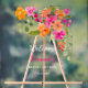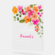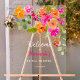 Un letrero de bienvenida para una despedida de soltera boho chic naranja, rosa y verde con flores pintadas a mano y follaje verde. Una fiesta de jardín encantador para la novia.
