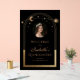 El Rótulo acrílico Quinceanera Famoso de Oro Negro Famoso Celeste presenta un elegante marco dorado de sol, luna y estrellas alrededor de su foto favorita con la información de señas de bienvenida de la personalizado Quinceanera debajo. Personalice editando el texto en los cuadros de texto y agregando su foto favorita. Diseñado para usted por ©2024 Evco Studio www.zazzle.com/store/evcostudio