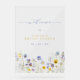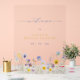 Una bonita tabla de bienvenida de desayuno nupcial floral acrílica azul y amarilla que presenta una orla inferior de pensamientos y flores silvestres de acuarela y "bienvenida" en fuente de caligrafía moderna azul. Personalice con nombre y fecha del desayuno.