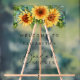 Letrero de bienvenida de desayuno nupcial de acrílico transparente rústico con un ramo de flores de girasol y vegetación de eucalipto, un guión de caligrafía chic y tipografía serif elegante.