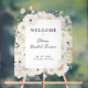Esta hermosa señal de bienvenida de despedida de soltera de acrílico floral es perfecta para celebrar a la futura novia. El diseño presenta un marco de acuarela con flores blancas y seguramente traerá un toque elegante a la ocasión. ¡Celebre a la futura Sra. con esta impresionante señal de bienvenida de despedida de soltera floral!