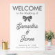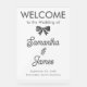 Un equilibrio perfecto de escritura suave y tipografía de sari audaz hace que este signo de bienvenida sea elegante y versátil. Ideal para bodas modernos con un toque romántico.