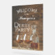 El elegante cartel de bienvenida de un fiesta ACRYLIC derby incluye un decorador de whisky y vasos en un ilustracion rústico de madera con sus detalles en letras de moda. COINCIDIENDO elementos de nuestra colección.