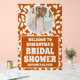 Letrero de bienvenida de ducha nupcial glamoroso rústico con foto de hojas de otoño de acrílico. Utilice las herramientas de plantilla en línea para agregar su propia foto. LA FOTO DE MUESTRA NO ESTÁ INCLUIDA. REEMPLACELA CON SU PROPIA FOTO ANTES DE REALIZAR EL PEDIDO. Los diseños son ilustraciones/gráficos planos impresos. #zazzlemade #ducha nupcial #foto #letrero de bienvenida #otoño #hojas #rústico #naranja quemada #elegante #Letrero de acrílico # Letrero de bienvenida de acrílico