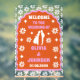 Señal Acrílica Bienvenido Naranja Rosa Retro Boho Daisy Boda