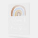 Bienvenidos a su ducha con motivos de arcoiris con este adorable cartel de bienvenida con una ducha de bebé de acrílico. En la parte superior, un arcoíris acuarela se despliega en tonos azules y marrones con un fondo acrílico transparente. El cartel de bienvenida de la ducha de bebé color arcoiris marrón y azul incluye un guión de caligrafía negra. Personalice el moderno cartel de bienvenida de la ducha para bebés con el nombre de la madre y la fecha de la ducha.