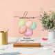 Los globos acuáticos multicolores son un diseño divertido para una ducha de bebé, sus detalles junto con la palabra "Bienvenida" aparecen en la parte superior de este cartel de acrílico transparente. CAMBIAR EL TAMAÑO para que se ajuste a su evento y pedido con o sin un soporte de madera. COINCIDIENDO elementos de nuestra colección.