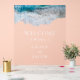 Cartel de bienvenida acrílico boda con diseño de olas oceánicas azules y todos los detalles de su boda tropical.