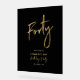 Da la bienvenida a tus invitados con esta moderna señal de bienvenida de cumpleaños. Esta señal cuenta con un simple texto "Cuarenta" y "Fiesta de cumpleaños número 40" en tema de colores dorado y negro. Puedes personalizar el nombre y la fecha. Las invitaciones y suministros para fiestas coincidentes están disponibles en mi tienda BaraBomDesign.
