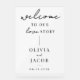 Personalice su decoración boda con este moderno cartel de acrílico de bienvenida boda. Presenta un diseño tipográfico sencillo y elegante en color blanco y negro.