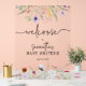 En este cartel de bienvenida de CLEAR ACRYLIC baby ducha aparecen hermosas flores silvestres de acuarela y sus detalles en letras de moda. COINCIDIENDO elementos y más colores en nuestra colección.