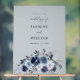 Señal Acrílica Bienvenidos Bodas florales grises y azules