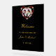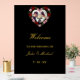 Make a bold and sophisticated statement with this luxury Acrylic Welcome Sign from the "Floral Heart" collection. Designed for high-end celebrations, this sign features a striking deep black background that makes the golden typography and the romantic rose heart wreath truly pop.
