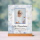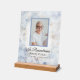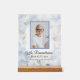 Recuerde la vida de su ser amado después de su muerte con la elegante celebración de la acuarela floral de la Carnación azul Celebración del Rótulo acrílico funeral de la vida. Este cartel conmemorativo de flores de bonito presenta una fotografía floral de color agua digital pintada de pétalos de flores de clavel con un tinte azul claro y fondo blanco y las palabras En recuerdo. Siéntase libre de cambiar el texto y personalizarlo con una fotografía, nombre y fechas.