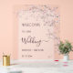 Blush pink cherry blossom floral transparent wedding welcome reception board.