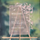 Blush pink cherry blossom floral transparent wedding welcome reception board.