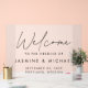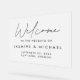 Bienvenido a sus huéspedes bodas con este sencillo y elegante cartel de acrílico de bienvenida a la boda. El signo de bienvenida boda horizontal presenta un guión escrito a mano y negro con un fondo acrílico blanco falso. Personalice el moderno cartel de bienvenida boda con sus nombres, fecha de boda y ciudad/estado. El cartel de bienvenida acrílico boda es ideal para su boda moderno.