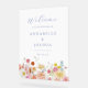 Esta señal de boda de flores de acuarela suave presenta delicadas flores pastel, perfecta para una boda romántica, vintage o con tema de jardín. Ofrece un toque personalizado y elegante a su celebración. El texto y los colores personalizables lo convierten en una opción artística y atemporal para su día especial.