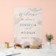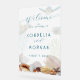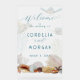 Señal de bienvenida boda con temática oceánica hecha de acrílico con diseño de mares vivos. Las tortugas marinas, las conchas de playa y los corales forman la imagen de fondo, que es opaca. Un borde de conchas realistas en el fondo incluye dólares de arena, pez estrella, conchas, una concha de oliva y vieiras. El texto es de color azul marino oscuro con "bienvenida" en la parte superior. La siguiente línea es "al boda de", con los nombres de la novia y el novio en letras impresas en mayúsculas. La fecha de boda se agrega en la última línea. Se muestra aquí en tamaño de 20 x 30 pulgadas, pero el diseño se transfiere a cualquiera de los tamaños de los signos. Se doblarán las señales grandes, por lo que se planea tener una forma de acoplarlas al caballete o pararse.
