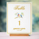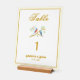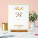 Números de mesa de boda signo de hermosas imágenes de pájaros azules. Las imágenes, el fondo y el texto se pueden personalizar. Obra original de W.B.