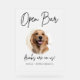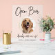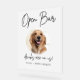 El mascota editable y lindo boda firma el signo de la bebida cuenta con un marco circular para presentar la foto de su mascota junto con el tipo de letra caligrafía Open Bar, las bebidas están sobre nosotros! Personaliza con los nombres de la novia y el mascota.