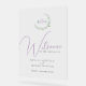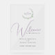 signo de bienvenida boda con bayas moradas y monograma foliage verde suave. Personalice con sus propias iniciales de monograma, nombre de la pareja y fecha de boda. Arte monográfico pintado a mano en acuarela y diseñado por Sarah Trett para www.mylittleedenweddings.com en Zazzle.