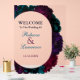 Señal de bienvenida floral en acrílico de tonos joya modernos y elegantes para boda. Bienvenido a sus invitados con estilo con esta señal de bienvenida de boda floral en acrílico de tonos joya modernos. Con una sofisticada mezcla de flores de burgundy intenso, azul marino, fucsia, magenta, turquesa y púrpura, esta señal elegante crea una primera impresión impresionante. El diseño acrílico elegante añade un toque contemporáneo, mientras que los ricos tonos de joya emanan romance y lujo. Perfecto para una boda audaz y con estilo, esta señal de bienvenida marca el tono para una celebración inolvidable.