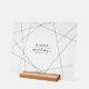Las piezas de esta moderna suite boda cuentan con un elegante guión escrito a mano y un elegante fondo metálico plateado con un delicado patrón geométrico en negro básico. Las iniciales y la fecha de boda del novio y la novia se pueden personalizar en este signo de acrílico minimalista utilizando la plantilla proporcionada. Busque ID648 para ver todas las piezas de este conjunto elegante.