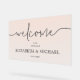 Un signo de bienvenida ACRYLIC presenta un degradado rosa polvoriento transparente y los detalles de su boda en letras de moda. Cambiar a cualquier tamaño.