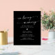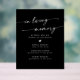 Este boda negro moderno y ostentoso en el símbolo acrílico de la memoria es perfecto para un boda minimalista. El moderno diseño bohemio presenta una caligrafía rústica sencilla con un estilo único y clásico. Perfecto para cualquier temporada: primavera, verano, otoño o invierno. Personalice su cartel conmemorativo de bodas con los nombres de sus seres queridos fallecidos.