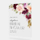 Da la bienvenida a los invitados con esta señal de bienvenida de despedida de soltera floral boho personalizable de acrílico. Cuenta con un ramo floral de acuarela de flores de burgundy, púrpura, rojo y melocotón y hojas de eucalipto. Personalice esta señal de bienvenida de despedida de soltera floral de otoño agregando los detalles de su evento. Esta señal de bienvenida de despedida de soltera boho es perfecta para despedidas de soltera de otoño.