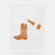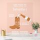 Un diseño único y dibujado a mano de botas de vaquero de tonos terrosos rústicos. Este diseño con tema campestre presenta ilustraciones de botas de vaquero, flores de estilo moderno de mediados de siglo, herraduras y mucho más. Un hermoso diseño ideal para fiestas y eventos con tema Occidental Campestre.