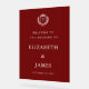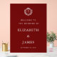 Featuring a rich burgundy background with crisp white lettering, this design showcases a classic crest at the top with the bride and groom’s stacked initials. Below, it warmly welcomes guests to the wedding of the couple and displays the wedding date.