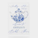 Cartel de bienvenida de Despedida de Soltera con tetera vintage elegante y patrón toile de jouy "algo azul antes de hacerlo"