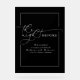 Acabe su cena de ensayo con este fresco mensaje de bienvenida negro. Con su escritura moderna sobre acrílico negro elegante, es un verdadero atractivo. El cartel, "La noche antes", le da a todos un ambiente acogedor y elegante. Aprovecha la diversión de tu boda con esta pieza de moda, haciendo que "One Day Away" se sienta especial.
