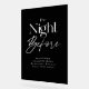 Crea una primera impresión inolvidable con este cartel de bienvenida de moda acrílico en blanco y negro para tu cena de ensayo. Diseñado con un acrílico elegante y brillante, con un guión moderno, cautiva instantáneamente a sus huéspedes. El audaz mensaje, "La noche antes", establece el tono perfecto de anticipación y emoción, atrayendo a todos a la celebración. Esta sofisticada pieza combina sin esfuerzo el estilo y la elegancia, haciendo que las festividades del día anterior se sientan extraordinarias. Además, con las opciones de personalizable tanto para el texto como para los colores de fondo, puede personalizarlo para que coincida perfectamente con el ambiente y la paleta únicos de su evento.