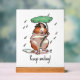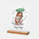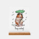 Un lindo conejillo de indias con un recordatorio positivo en un signo acrílico. Utilice "Personalizar esta plantilla" para modificar el texto "¡Sigue sonriendo!" y hacer un elemento único y personalizado. Con un divertido conejillo de indias bailando bajo la lluvia, con una sabrosa hoja de nasturcio para un paraguas. Dicen que fingir una sonrisa puede cambiar tu estado de ánimo.