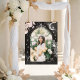 Welcome guests to your celebration in style with our Chic Floral Celestial Moon & Stars Quinceañera Acrylic Sign, featuring a custom photo layout framed in elegant celestial beauty. This design showcases your favorite photo within a graceful arched frame, enhanced by a regal Quinceañera tiara, ornate column elements, and soft overlay effects that beautifully complement the image. Delicate hand-drawn florals, twinkling stars, and a dreamy crescent moon bring a whimsical, celestial charm to the layout, while elegant script typography allows for full personalization with your name and event details. All set against a black background. Perfect for celestial, moonlight, or floral-themed Quinceañeras, this sign makes a stunning first impression and a cherished keepsake. Original hand-drawn illustration and design by © Moodthology Papery.