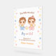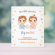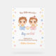 Bebés personalizados, niños y chicas, con toallitas azules y rosas y bibs amarillos con sondas que hacen juego. La encantadora y original invitación a la ducha de bebé.