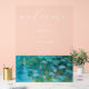 Elegante y moderno cartel de bienvenida acrílico boda con pintura de Claude Monet Water Lilies.