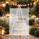 Designed in a refined minimalist style, this transparent acrylic sign features sophisticated serif typography paired with delicate script accents. The floating black lettering on clear acrylic creates a modern, airy look — perfect for estate weddings, garden ceremonies, and contemporary celebrations.